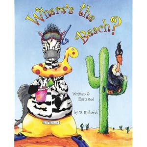 The main character is a fun loving zebra named Zeke. He wants to go to the beach. He purchases a surfboard, map,flippers and beach toys. So once he has all his purchases , he boards his tricycle and heads off in search of the beach. He expects it will be easy to locate as he has a map,however unfortunately he leaves his map in the store. So poor Zeke ends up in the desert . He is so disappointed. Luckily he locates a sign that takes him through a tunnel which leads him to the beach. You can imagine his joy at this discovery.