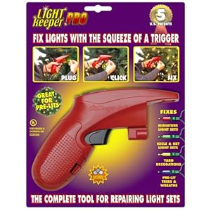 The “LightKeeper Pro” is a red gun-shaped product that fixes most Christmas light sets in seconds and has been called a MUST-HAVE for the holidays and they sponsor a toll-free hotline for lighting repair questions 7 days a week, and the number is 888-858-2548 (or 888-ULTA-LIT).