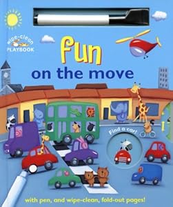 Each page of Barron's sturdy, brightly illustrated Wipe Clean Playbooks are filled with familiar objects and animals for kids to identify and fun activities for them to complete. Kids can write in their answers with the included wipe-clean pen. Then they can use the felt eraser, conveniently attached to the pen to clear off the pages and start over again! These highly interactive books also feature a wheel that changes picture details on both the front cover and its reverse side, along with a fold-out feature on every right-hand page. In Fun on the Move, adorable animals in planes, trains, boats, and cars will keep children engaged as they count, draw, identify shapes and colors, and more.