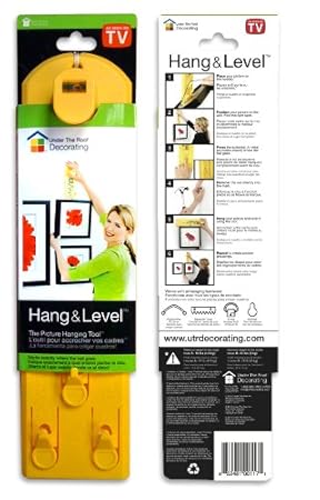 The Hang & Level™, picture hanging tool, ensures perfectly straight positioning each and every time, with absolutely no measuring or calculating involved. As a result, it not only takes the guesswork out of picture hanging, but it also eliminates unsightly holes in the wall.