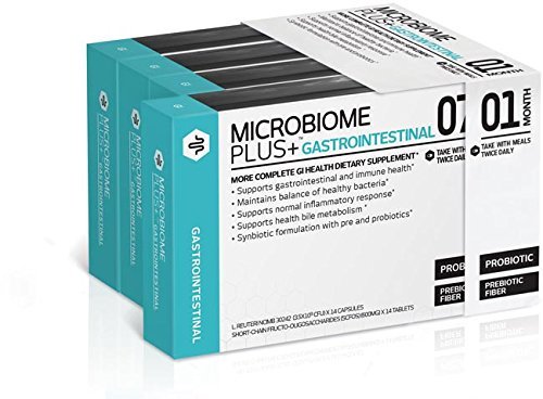 Microbiome Plus+ Gastrointestinal probiotic is a more complete gastrointestinal health dietary supplement that provides natural prebiotic fiber (scFOS) and the probiotic L. reuteri NCIMB 30242 which work together to maintain the balance of healthy bacteria in your gut and support normal digestive function.* The probiotic in Microbiome Plus+ Gastrointestinal has been shown in clinical trials to help support normal inflammatory response in addition to supporting digestive health.* scFOS is a natural prebiotic fiber that supports a healthy gastrointestinal tract by promoting digestive function, immune health, the growth of healthy bacteria, natural intestinal mechanical barriers, and gut integrity.* Microbiome Plus+ Gastrointestinal combines these two ingredients to provide more complete gastrointestinal health support.* Not only does scFOS support digestive function but as a prebiotic helps L. reuteri NCIMB 30242 to support normal gastrointestinal function.